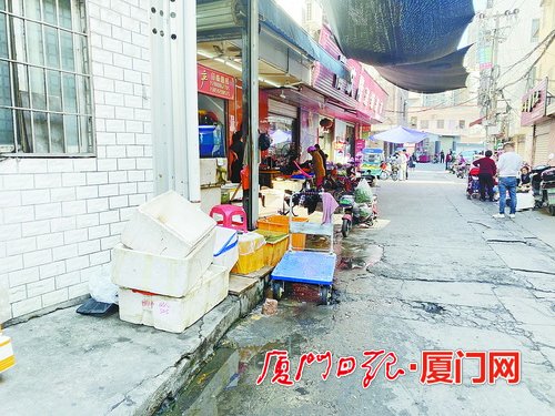 記者從興港路輔路走進漸美村不久,便在福慶隆超市門口看到一處處售賣蔬菜、雞蛋的小攤,橫在超市對麵的道路上。超市一側,售賣水產品的店鋪將貨物擺至店門口,地上滿是汙水。這一左一右的“攤位夾擊”,使得過路行人步步艱難。記者繼續往村內走,行至217棟6號(hao)診(zhen)所(suo)附(fu)近(jin)的(de)交(jiao)叉(cha)路(lu)口(kou)時(shi),占(zhan)道(dao)擺(bai)攤(tan)現(xian)象(xiang)更(geng)為(wei)突(tu)出(chu),除(chu)了(le)攤(tan)車(che)和(he)鋪(pu)在(zai)地(di)上(shang)的(de)攤(tan)位(wei)外(wai),還(hai)有(you)攤(tan)主(zhu)將(jiang)三(san)輪(lun)車(che)上(shang)的(de)幹(gan)貨(huo)成(cheng)箱(xiang)堆(dui)放(fang)在(zai)地(di),或(huo)是(shi)搭(da)起(qi)帳(zhang)篷(peng)擺(bai)放(fang)貨(huo)物(wu)。