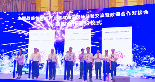 廈門工行積極支持戰略性新興產業發展。圖為該行與廈門市發改委簽署《培育發展戰略性新興產業集群戰略合作協議》。