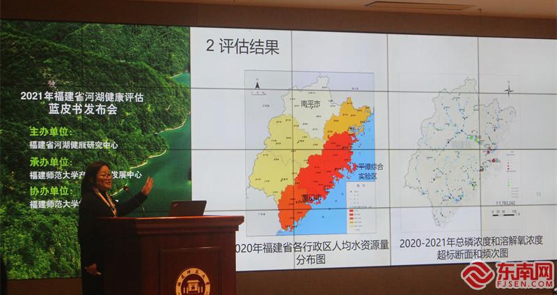 蘇玉萍教授發布“2021年福建省河湖健康評估藍皮書”。東南網記者張立慶攝