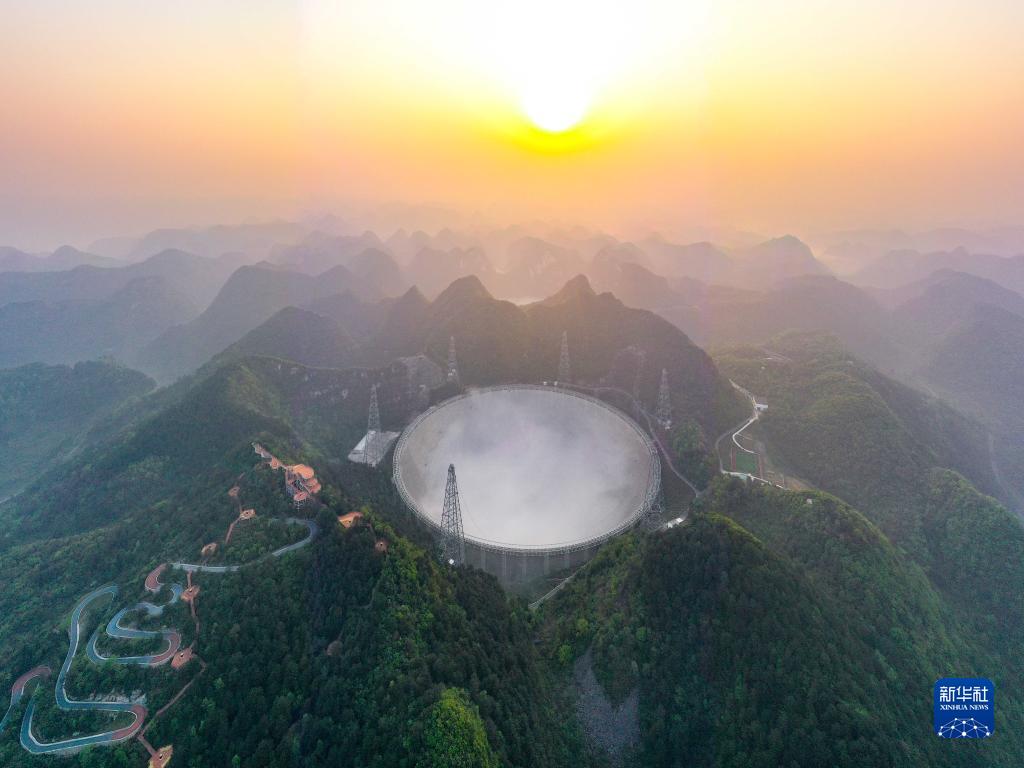 3月31日清晨拍攝的“中國天眼”全景(維護保養期間拍攝,無人機照片)。新華社記者歐東衢攝