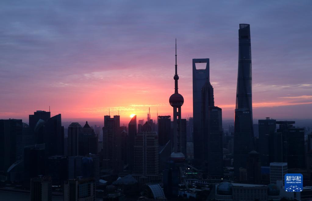 2022年1月1日在上海陸家嘴拍攝的新年初升的太陽。