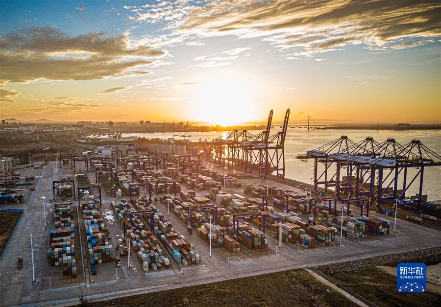 這是5月26日在海南洋浦經濟開發區拍攝的洋浦國際集裝箱碼頭(無人機照片)。新華社記者蒲曉旭攝
