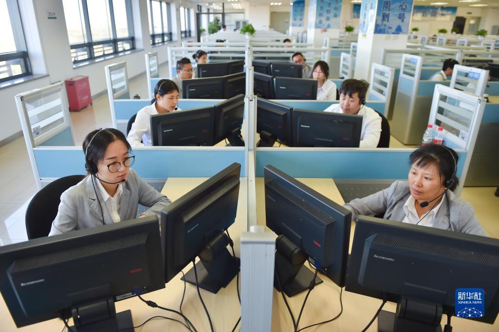 在位於北京亦莊的12345市民熱線話務大廳,工作人員接聽熱線電話(2019年11月13日攝)。新華社記者彭子洋攝