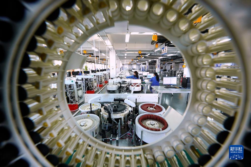 河北省遷安市一家生物科技企業的員工在生產線上工作(2021年12月26日攝)。新華社記者牟宇攝