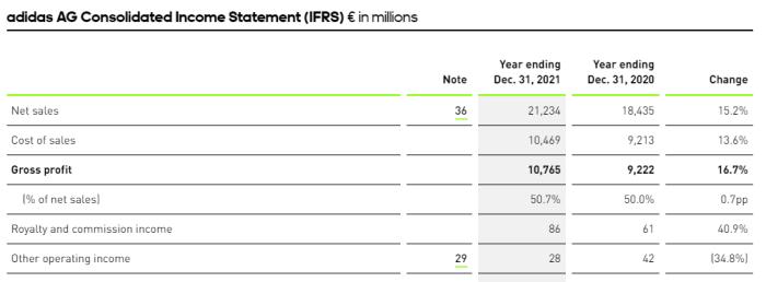 3月9日,阿迪達斯公布了2021年年度報告,2021年淨銷售額同比增長15.2%,達到212.34億歐元,這也是其全球營收首次突破200億歐元,但大中華區業績承壓明顯。