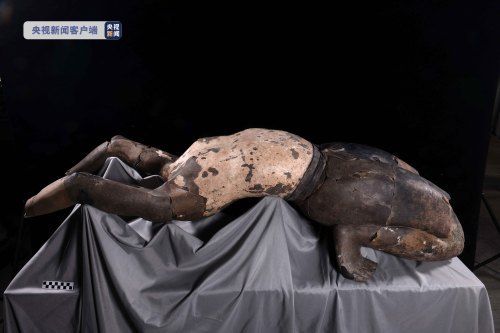秦始皇帝陵K9901百戲俑陪葬坑出土陶俑最新研究成果顯示:28號仰臥俑身上發現指紋印痕,通過比對指紋數據庫,可知製造工匠應為青少年。