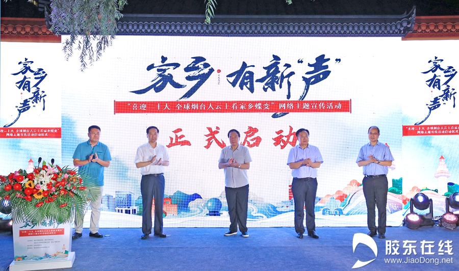 膠東在線7月29日訊(記者王向榮 李剛 金鑫)家鄉有新“聲”,雲上看“蝶變”。7月29日,“喜迎二十大全球煙台人雲上看家鄉蝶變”網絡主題宣傳活動啟動儀式在煙台所城裏文化大院舉行。