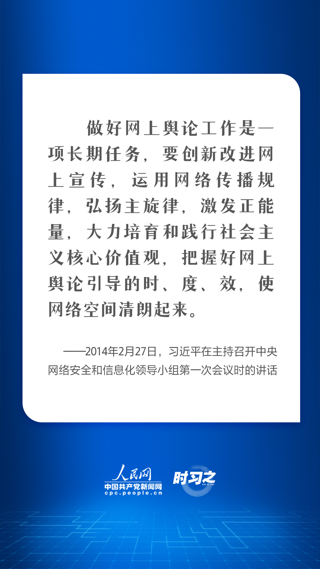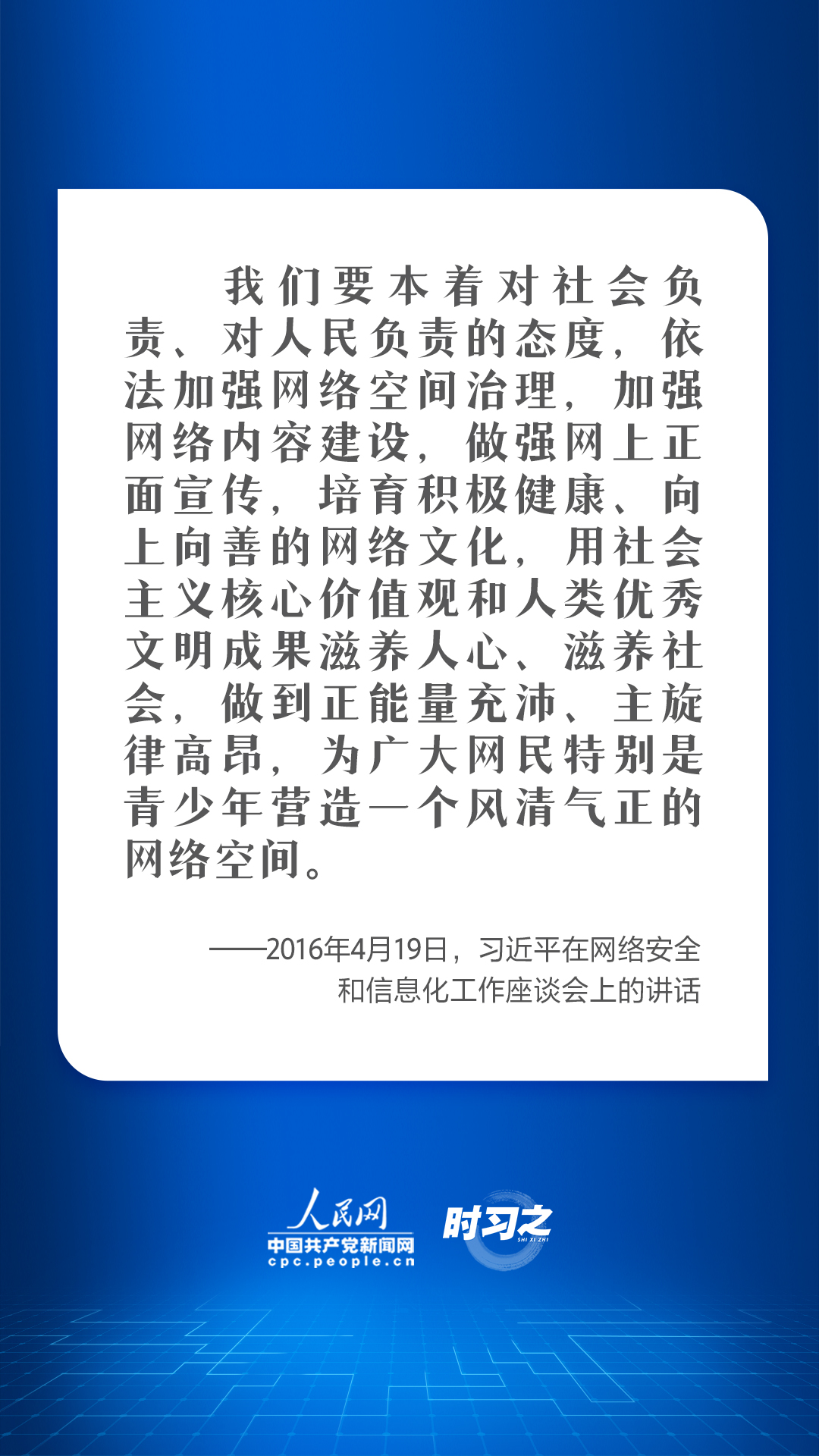 “網絡空間是億萬民眾共同的精神家園。網絡空間天朗氣清、生態良好,符合人民利益。網絡空間烏煙瘴氣、生態惡化,不符合人民利益。”一直以來,習近平總書記始終高度關注網絡強國建設,並提出要堅持發展和治理相統一、網上和網下相融合,廣泛彙聚向上向善力量。
