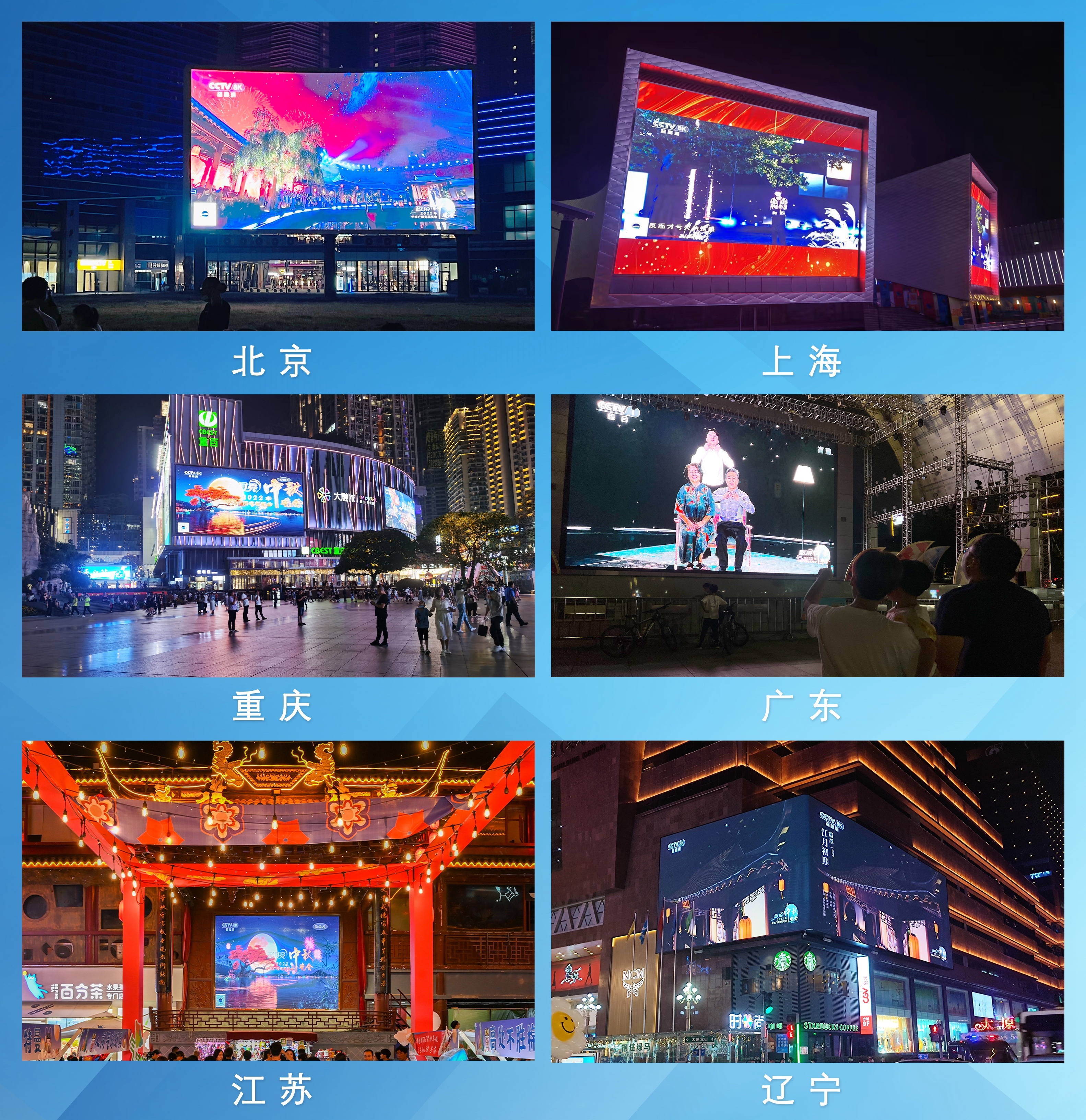 今年總台秋晚還首次采用8K超高清技術和三維菁彩聲技術製作播出,並首次通過“百城千屏”超高清公共大屏傳播體係播出。中秋夜,不少觀眾在全國70個城市的270餘塊戶外地標大屏上看同步觀看8K秋晚畫麵,並通過“雲聽”客戶端收聽到與視頻同步的三維菁彩聲晚會電視伴音,大呼“很有意思,視聽效果震撼”“在戶外看秋晚感受獨特”。