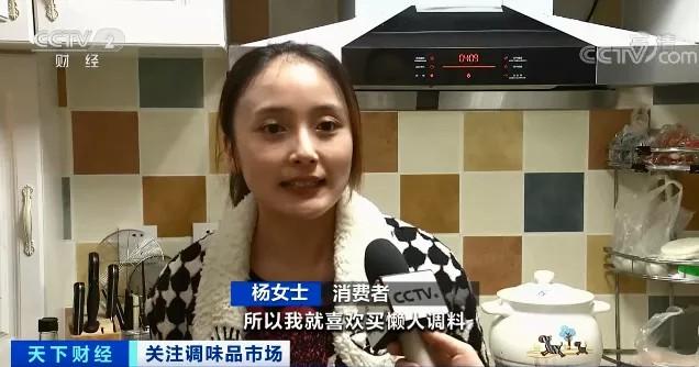 消費者楊女士:我覺得在家吃飯比較衛生,自己做飯,調料都得自己去準備,準備出來的味道還不一定特別合口味,所以我就喜歡買“懶人調料”,又快又省精力時間,味道又還挺好的。