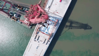 合龍之前,中交二航局項目團隊結合合龍段鋼箱梁特殊構造進行吊具優化改造,通過增加調節塊以平衡鋼箱梁受力狀態;提前組織鋼箱梁吊裝桌麵推演,緊密追蹤鋼箱梁運輸動態,部署運梁船、起重船拋錨定位,實現1台4000噸級浮吊、1艘萬噸級鋼箱梁運輸駁船等10餘台大型設備在同一海域有條不紊作業;同時結合海域潮汐特點精準選擇作業“窗口期”,為鋼箱梁精準吊裝提供了必要條件。