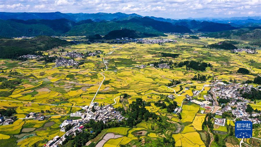 貴州省龍裏縣灣灘河鎮的田園秋色(9月15日攝,無人機照片)。新華社記者楊文斌攝