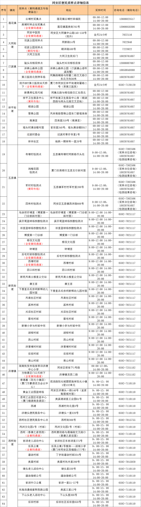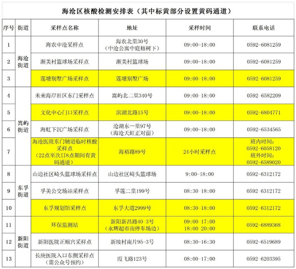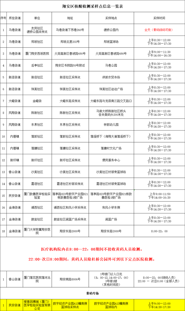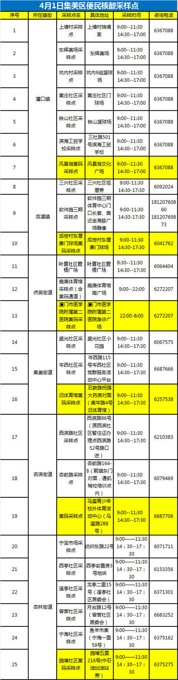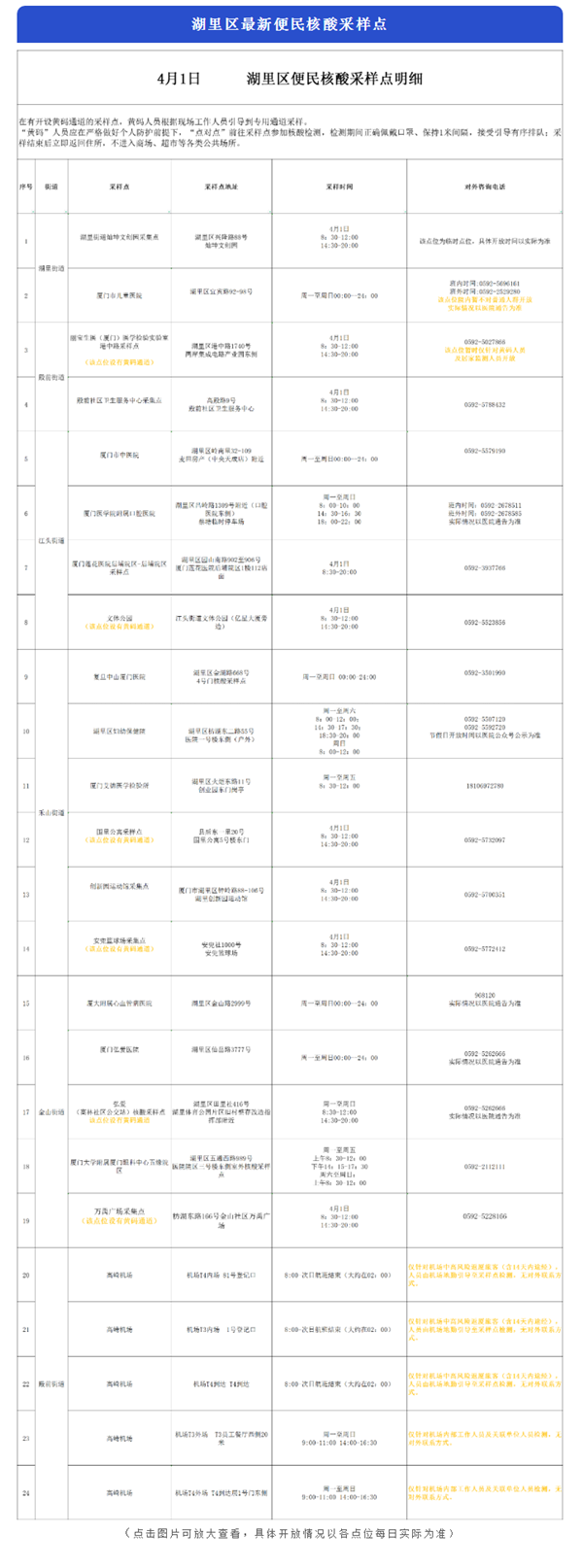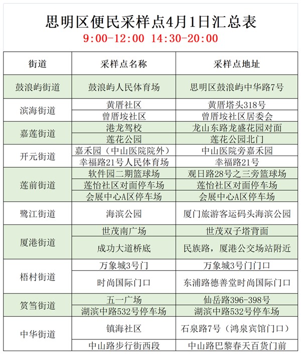 4月1日便民核酸采樣點彙總