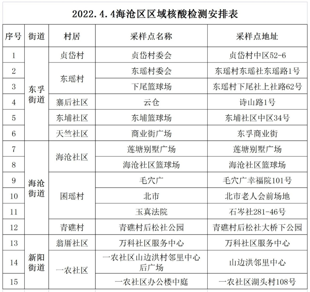 采樣對象為區域內所有人員(含常住人口、暫住人口、流動人口、外籍人口等)。詳細安排如下表: