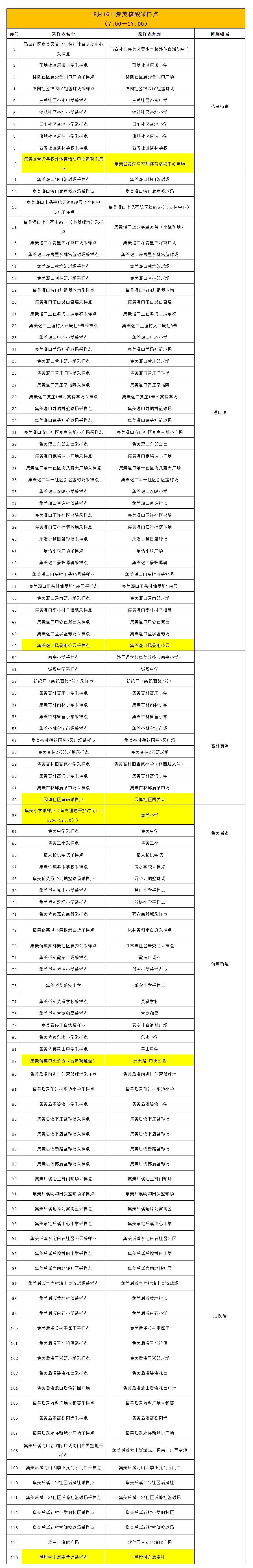 集美區核酸采樣點,見下表。