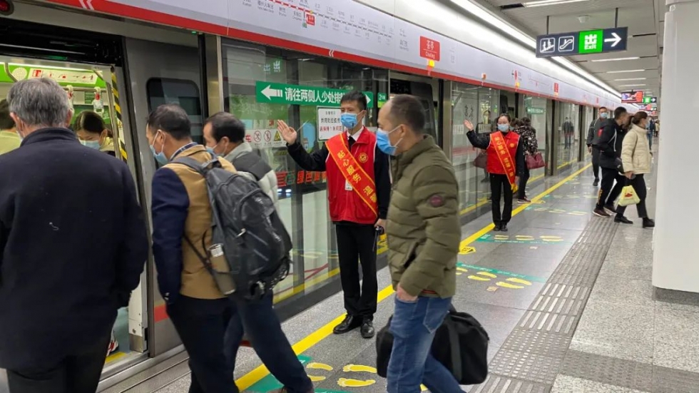 請qing市shi民min朋peng友you合he理li安an排pai出chu行xing時shi間jian及ji路lu線xian,進jin入ru地di鐵tie範fan圍wei內nei請qing規gui範fan佩pei戴dai口kou罩zhao,進jin站zhan乘cheng車che時shi,請qing提ti前qian打da開kai並bing出chu示shi手shou機ji的de健jian康kang碼ma,配pei合he工gong作zuo人ren員yuan做zuo好hao驗yan碼ma、測溫等工作。如遇車站實施客流控製,請聽從車站工作人員指引,有序乘車,如需幫助可聯係車站工作人員。
