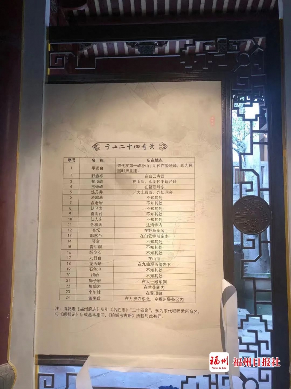 序廳兩側版麵則通過圖表形式分別展示於山曆年來大事記及於山二十四奇景,讓觀眾能夠直觀了解到於山的曆史脈絡與基本概況。