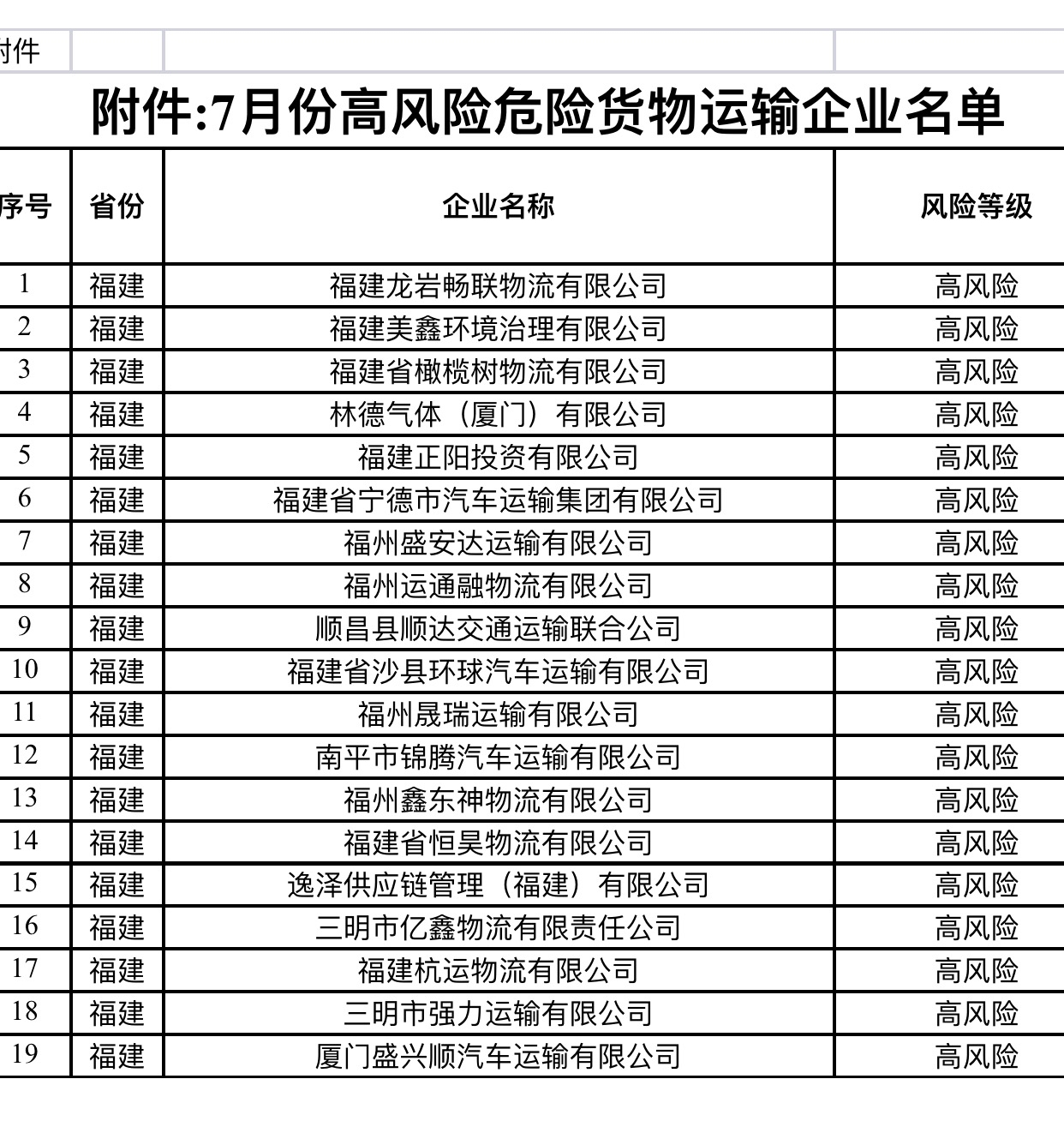 福建曝光7月份19家存在高風險隱患的危險品運輸企業名