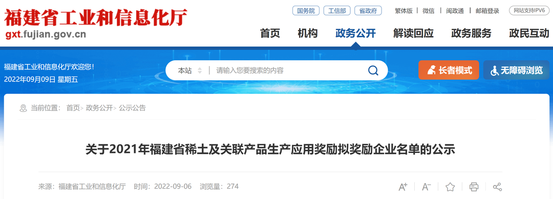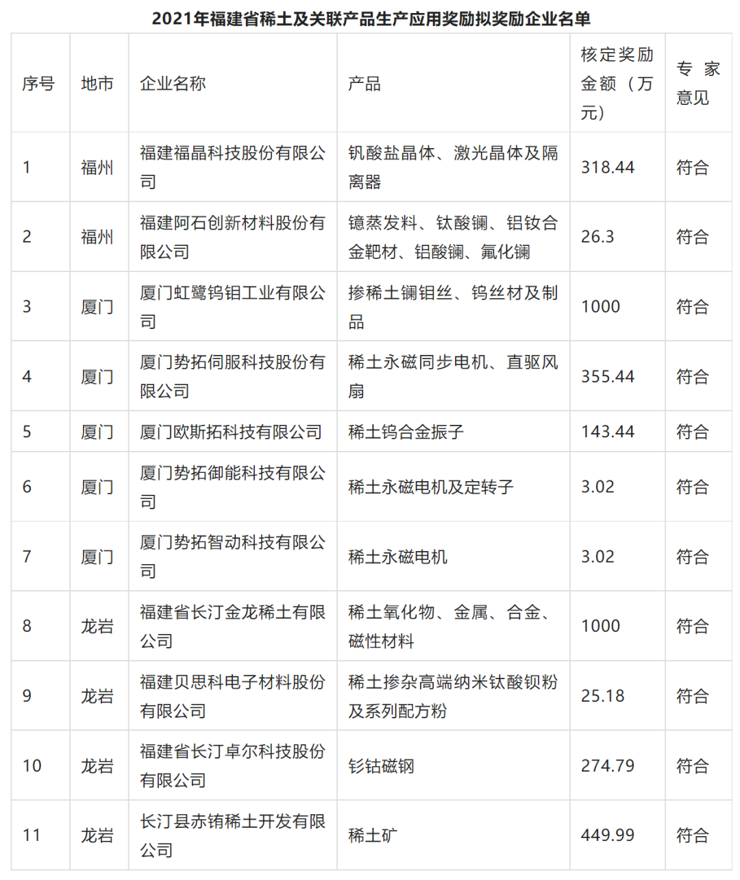 近日,福建省工信廳網站發布關於2021年福建省稀土及關聯產品生產應用獎勵擬獎勵企業名單的公示,福建11家企業擬獲獎勵,來看詳情——