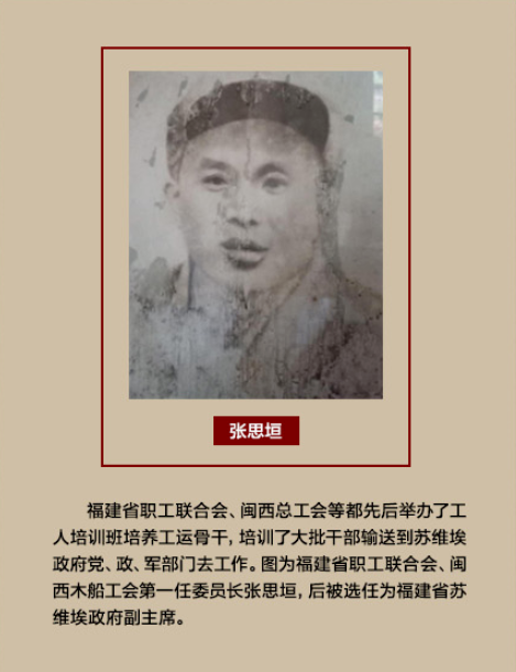 同年3月18日,福建省第一次工農兵代表大會在長汀縣城隆重召開,大會選舉成立了福建省蘇維埃政府,由35名執行委員和13名候補執行委員組成執行委員會。22日,執行委員會召開第一次會議選舉張鼎丞、闕繼明、張思垣、範樂春、李六如、郭滴人、鍾顯光、張華先、譚震林等九人為主席團,以張鼎丞為主席,闕繼明、張思垣為副主席,張思垣兼勞動部長。1932年(nian)春(chun),閩(min)贛(gan)兩(liang)省(sheng)工(gong)人(ren)代(dai)表(biao)大(da)會(hui)在(zai)江(jiang)西(xi)瑞(rui)金(jin)黃(huang)家(jia)山(shan)勝(sheng)利(li)召(zhao)開(kai),正(zheng)式(shi)宣(xuan)布(bu)成(cheng)立(li)兩(liang)省(sheng)職(zhi)工(gong)聯(lian)合(he)會(hui),選(xuan)舉(ju)張(zhang)思(si)垣(yuan)為(wei)福(fu)建(jian)省(sheng)總(zong)工(gong)會(hui)委(wei)員(yuan)長(chang),福(fu)建(jian)省(sheng)職(zhi)工(gong)聯(lian)合(he)會(hui)就(jiu)設(she)在(zai)這(zhe)裏(li),下(xia)設(she)組(zu)織(zhi)、宣傳、交通、婦女等部,下轄長汀、龍岩、清流、寧化、歸化、上杭、永定、新泉、連城、汀州市等縣市職工聯合會和紙業、木船、店員、手工業、雇農、碼頭(苦力)、紡織等七個產業工會,約有會員11200餘人。