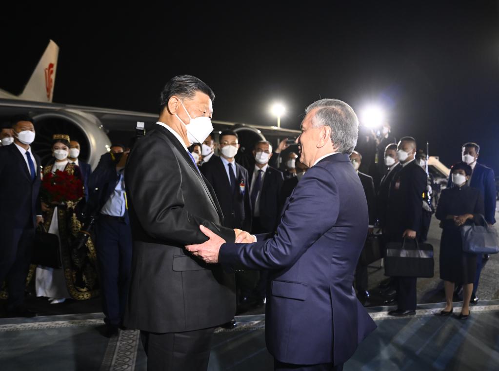 新華社烏茲別克斯坦撒馬爾罕9月14日電 當地時間9月14日ri晚wan,國guo家jia主zhu席xi習xi近jin平ping乘cheng專zhuan機ji抵di達da撒sa馬ma爾er罕han,開kai始shi對dui烏wu茲zi別bie克ke斯si坦tan共gong和he國guo進jin行xing國guo事shi訪fang問wen並bing出chu席xi上shang海hai合he作zuo組zu織zhi成cheng員yuan國guo元yuan首shou理li事shi會hui第di二er十shi二er次ci會hui議yi。
