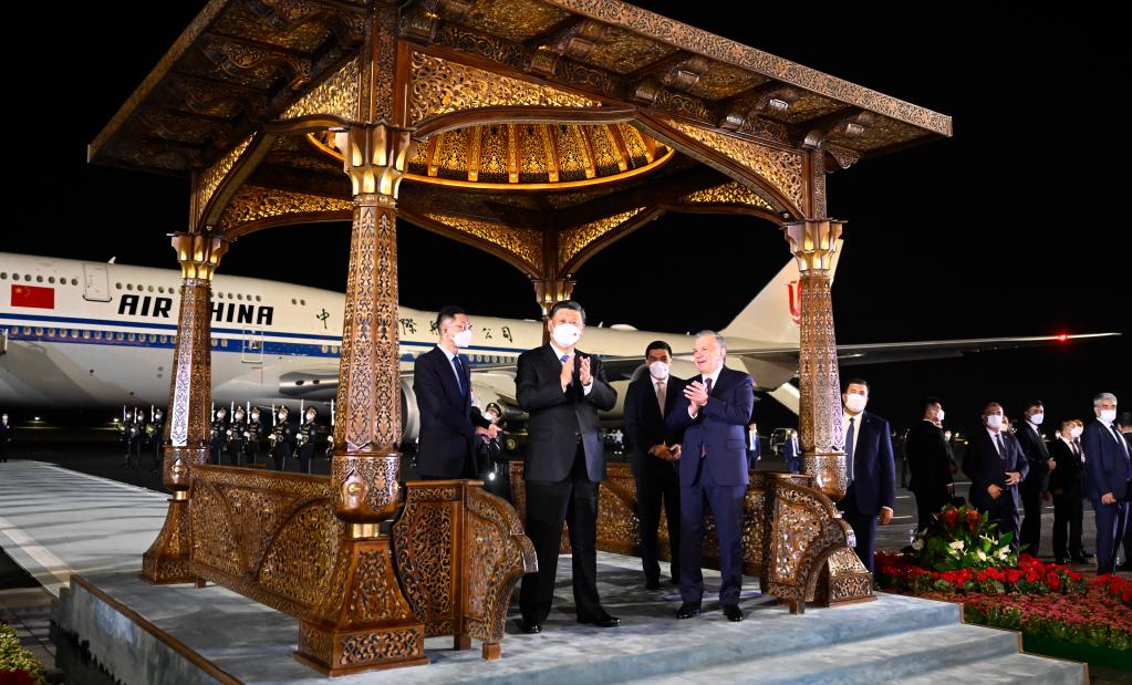 烏茲別克斯坦總統米爾濟約耶夫、政府總理阿裏波夫、外長諾羅夫、撒馬爾罕州州長圖爾濟莫夫等高級官員在機場熱情迎接。